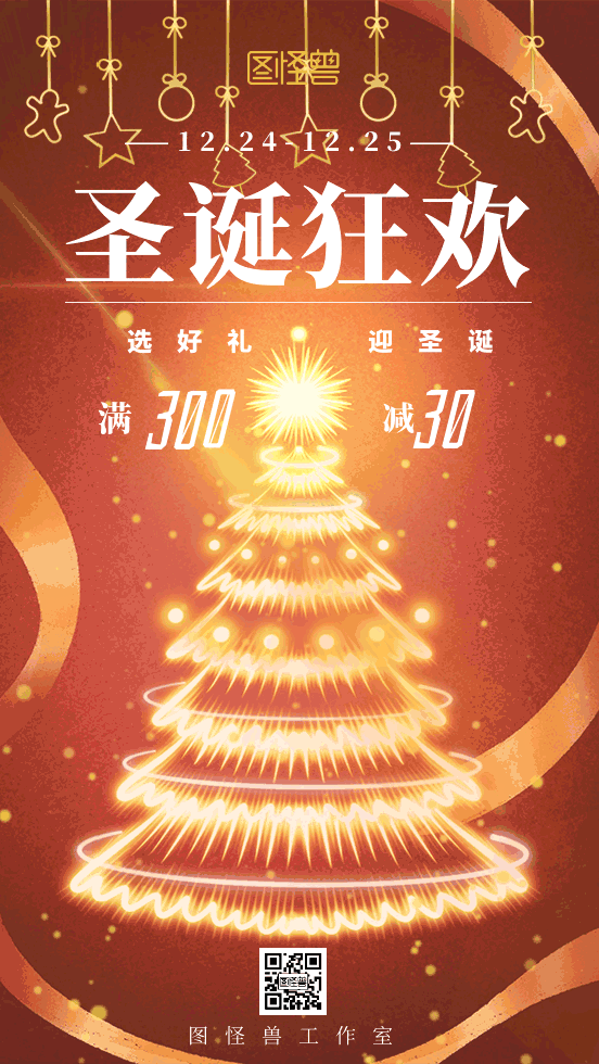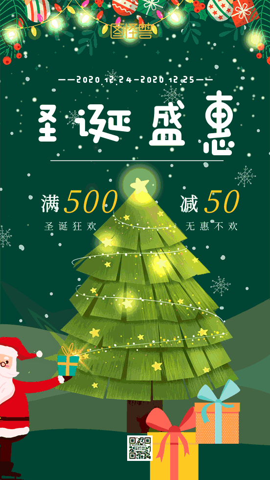 圣诞节平安夜礼物圣诞树动态海报