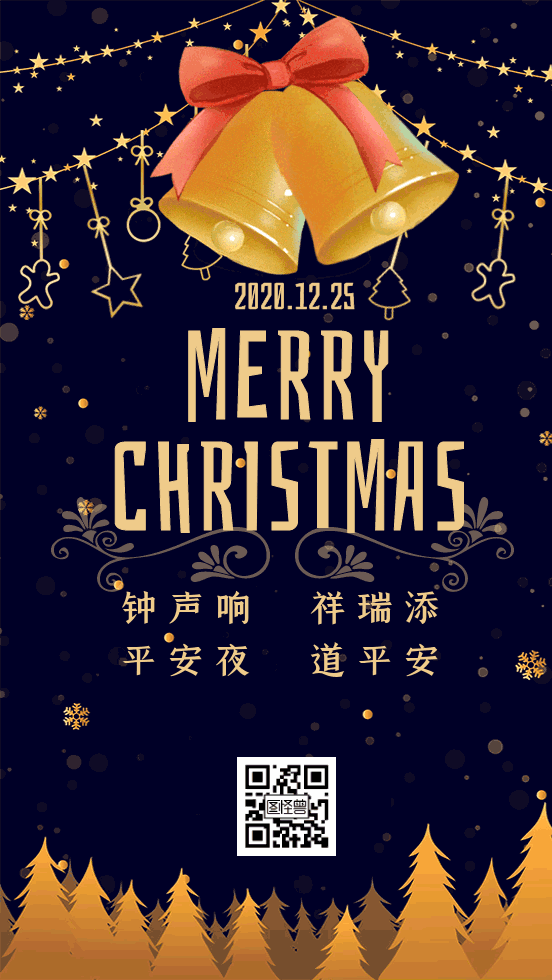 圣诞节平安夜铃铛礼物圣诞树动态海报