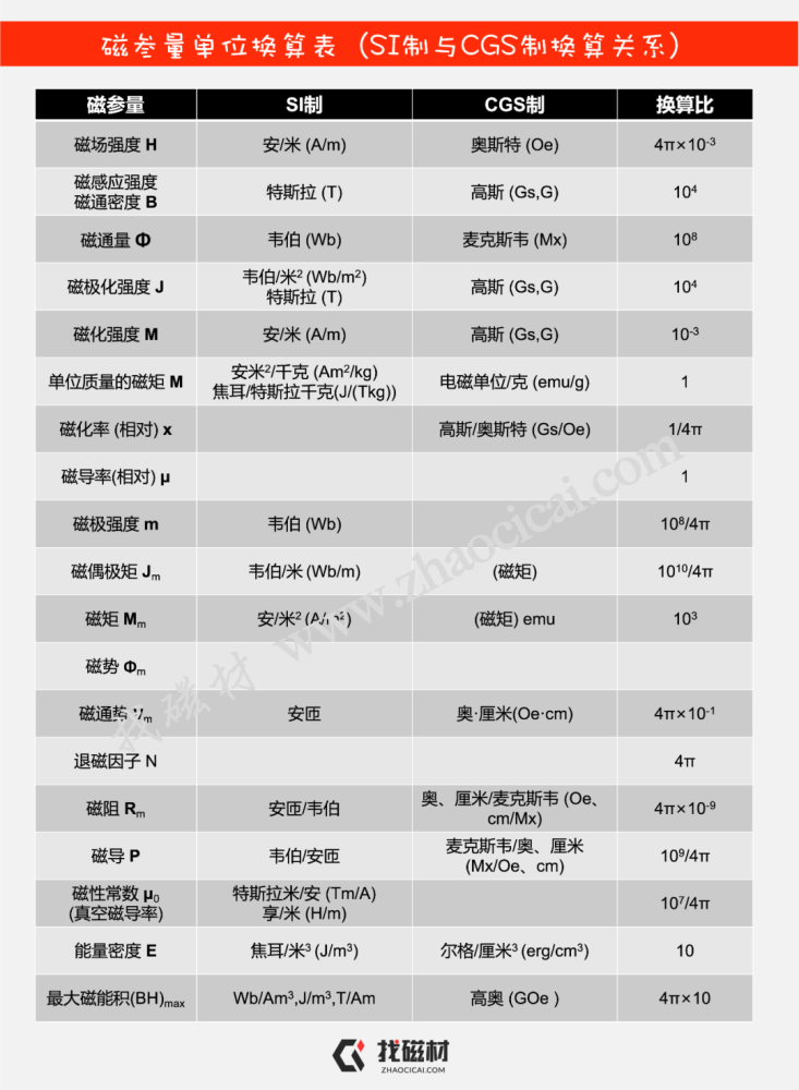 国际制(SI制)和高斯制(CGS制)单位转换