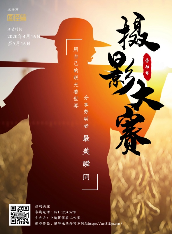 劳动节摄影大赛黄色中国风比赛宣传海报