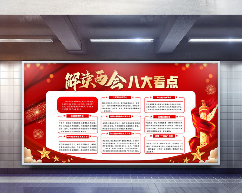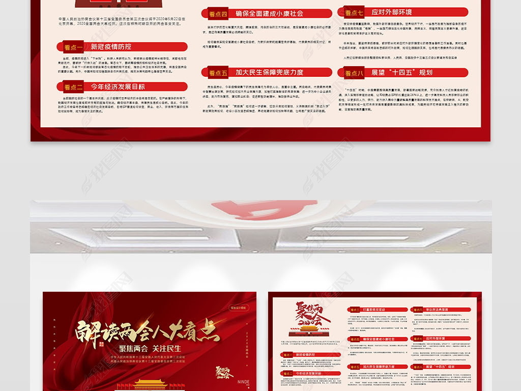 红色党建解读两会八大看点展板