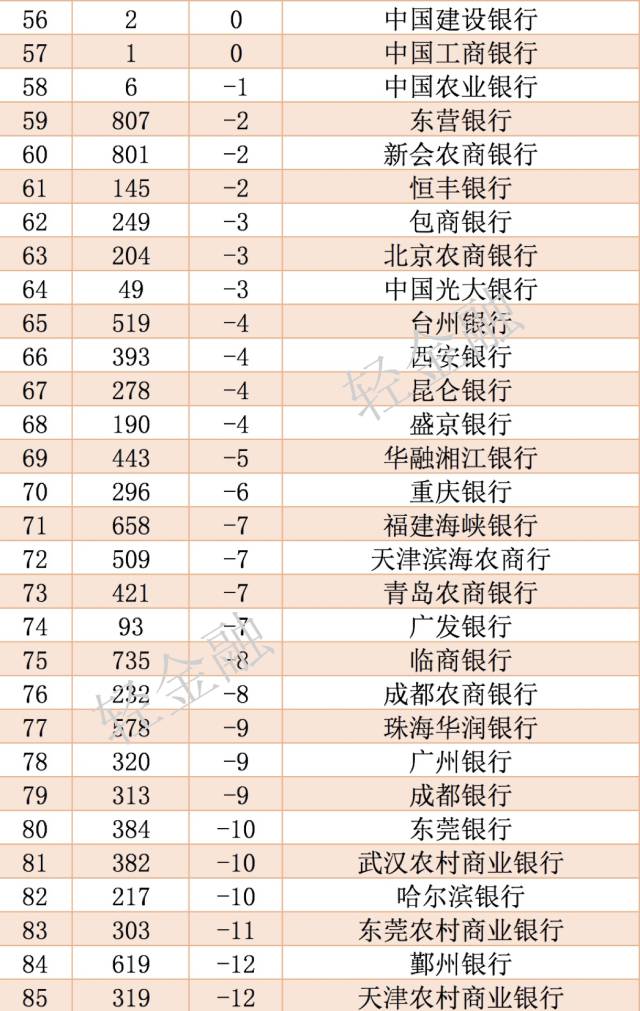 中国银行排名百强名单出炉!
