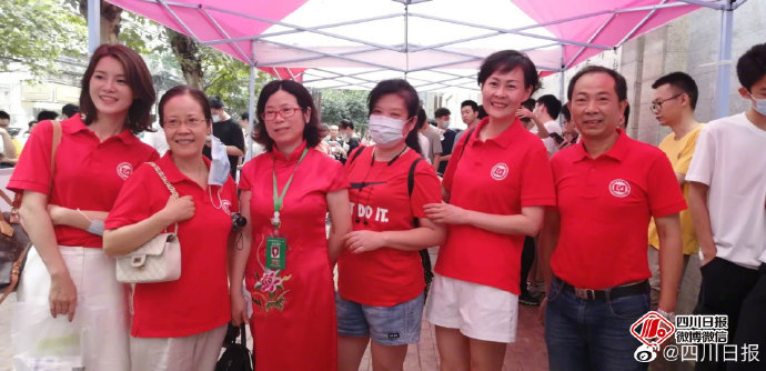 高三老师着红衣送考:预祝学生开门红!