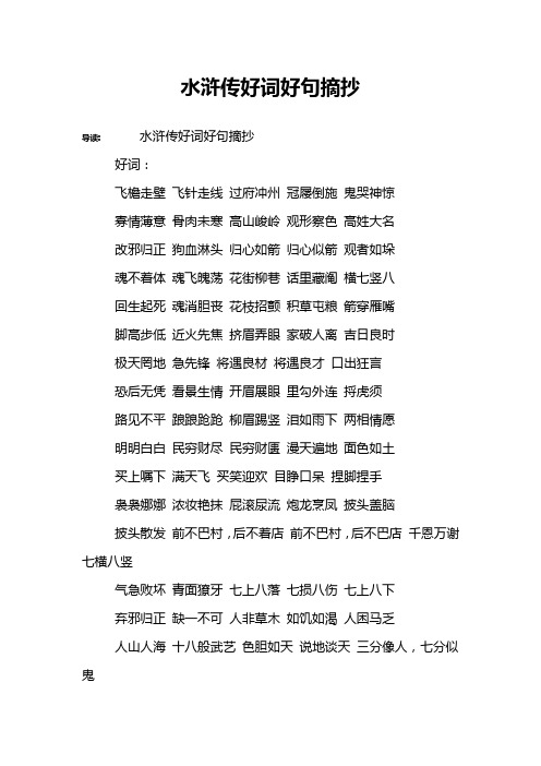 水浒传好词好句摘抄-名著水浒传好词好句摘抄