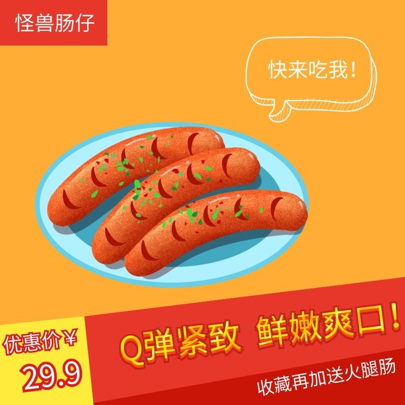 双汇肠仔Q弹紧致鲜嫩爽口暖色系淘宝主图