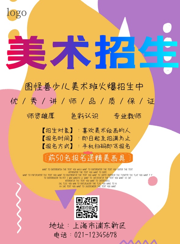 暖色系少儿美术培训班招生海报