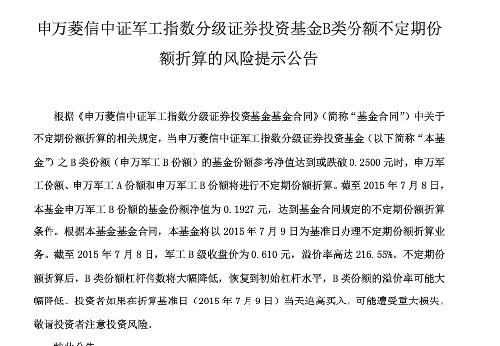 【重要提示】分级基金军工B级(150187)已