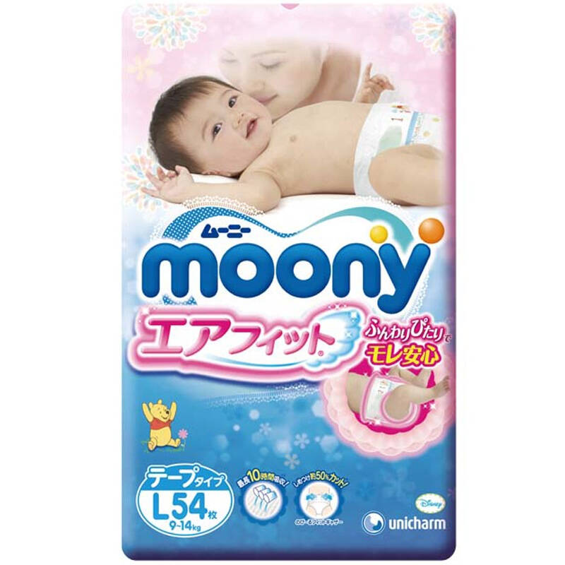 moony 纸尿裤 大号L54片【9-14kg】(上海