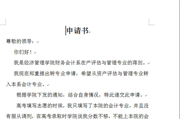 转专业申请书下载|转专业申请书范文doc