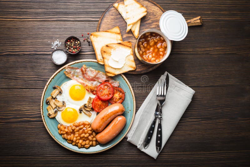 完整版的英文早餐,还有培根、 香肠、 煎蛋
