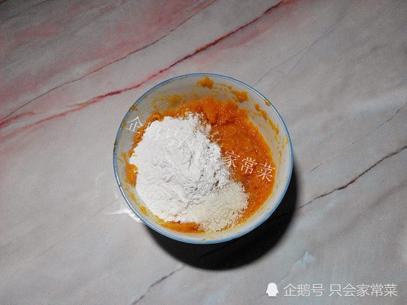 「南瓜小薄饼」材料:南瓜,糖,糯米粉。