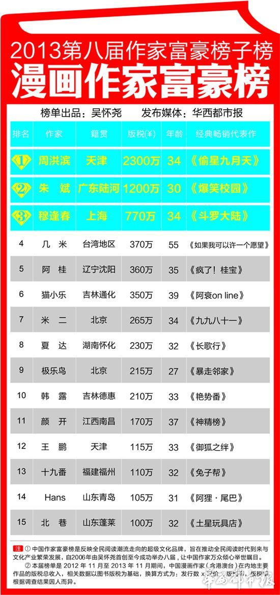 2013年中国网络作家富豪榜