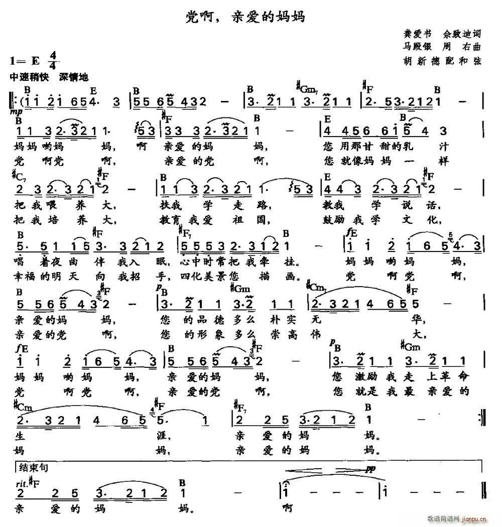 党啊,亲爱的妈妈_钢琴谱_搜谱网