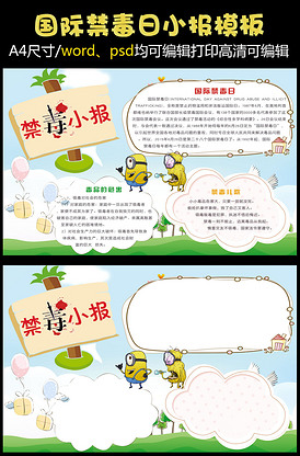 珍爱生命远离毒品禁毒小报手抄报psd小报