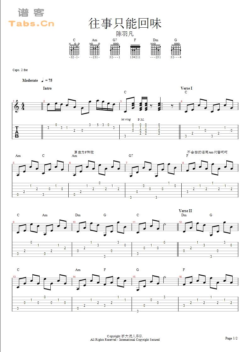 往事只能回味 经典版 调六线吉他谱-虫虫