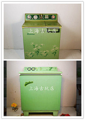 老上海怀旧老式洗衣机 水仙绿色双桶洗衣机 老上海老冰箱装饰摆设