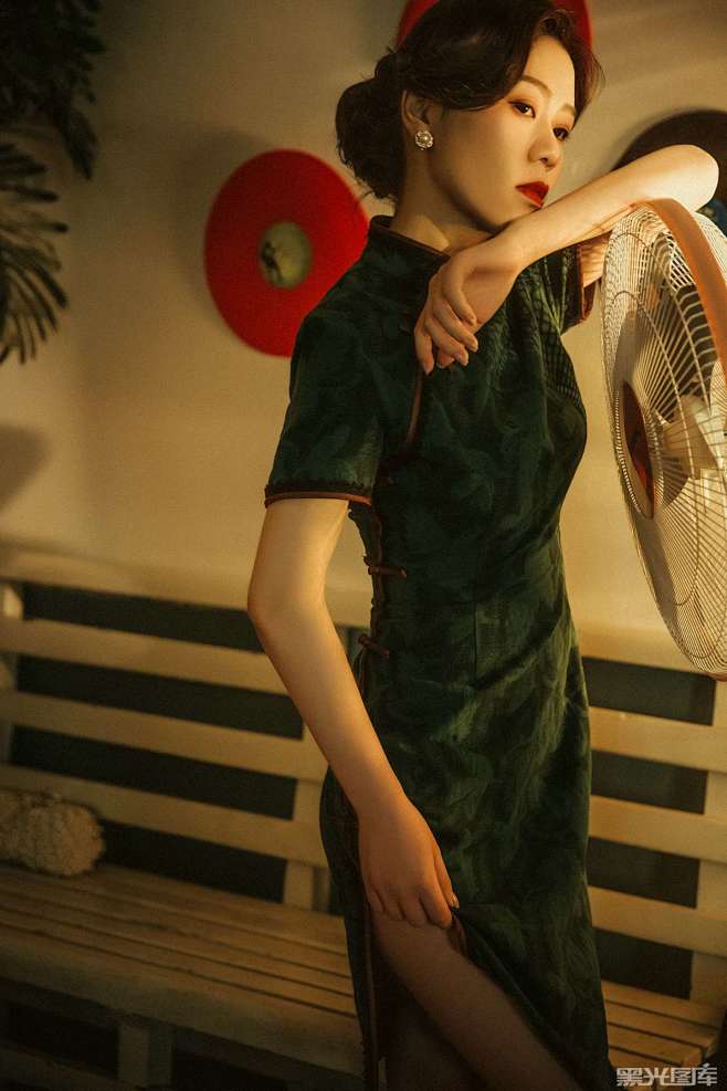 女徒弟混血演员安娜金拍摄优雅旗袍写真