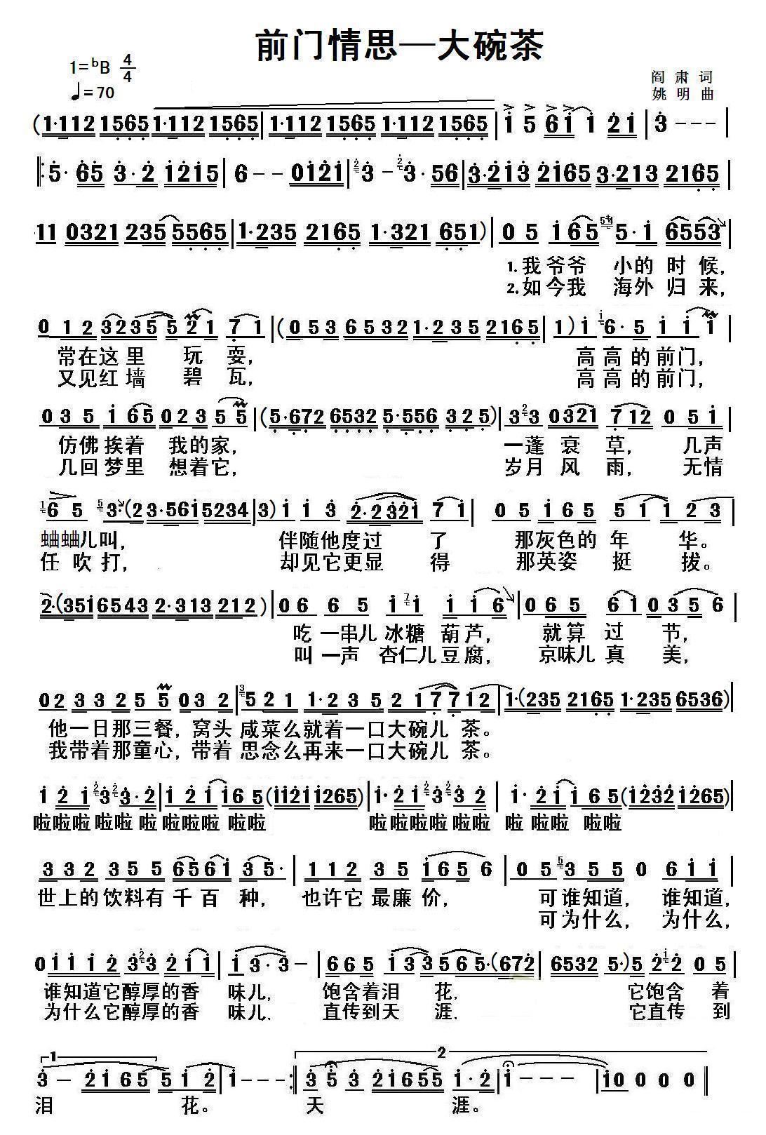 简谱《前门情思--大碗茶》阎肃 词\/姚明 曲