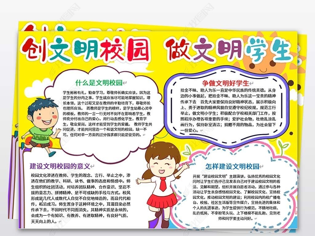 创文明校园做文明学生小报创建全国文明城市手抄小报