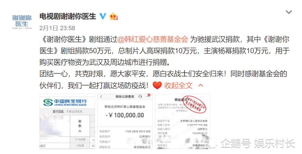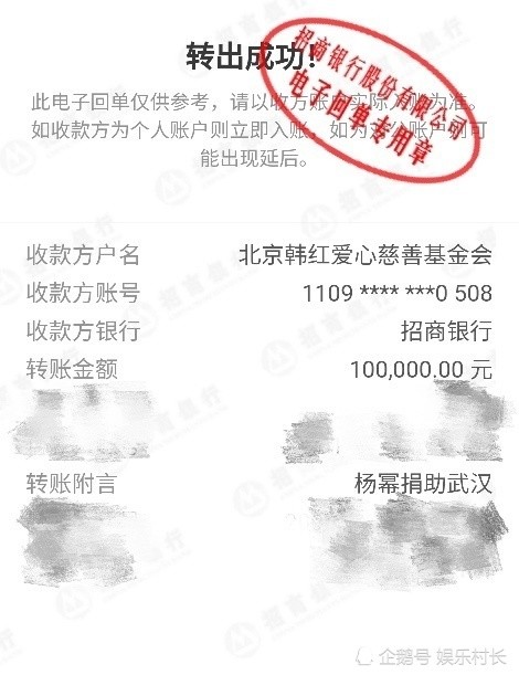 方捐款50万,杨幂捐款曝光,转账时附言六字