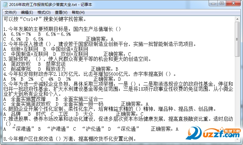2016年政府工作报告知多少答案大全
