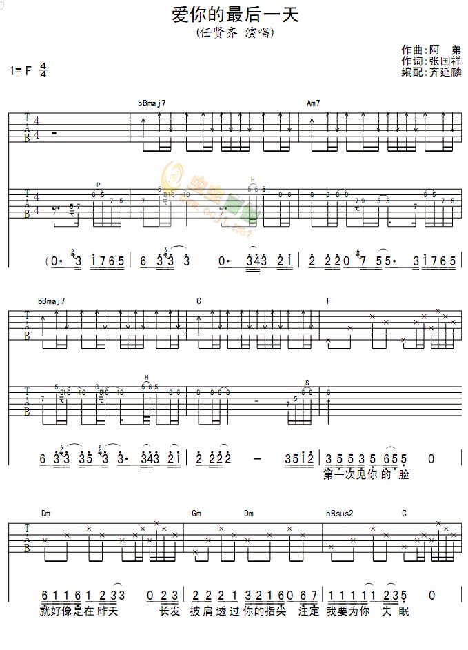 爱你的最后一天_任贤齐_吉他乐谱_歌谱