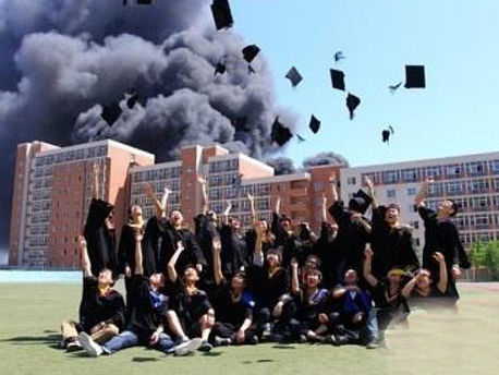 大连理工大学宿舍楼起火 毕业生拍毕业照(