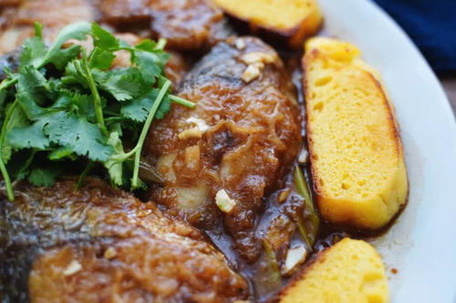 烧鲅鱼泡饼子,肉紧味鲜饼子香!