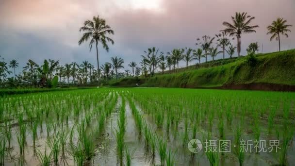 印尼巴厘岛一座年轻稻田上空的时差云