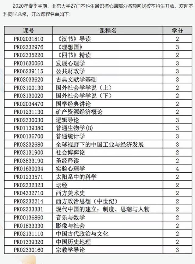 北大、清华互相开放部分本科课程:2020年