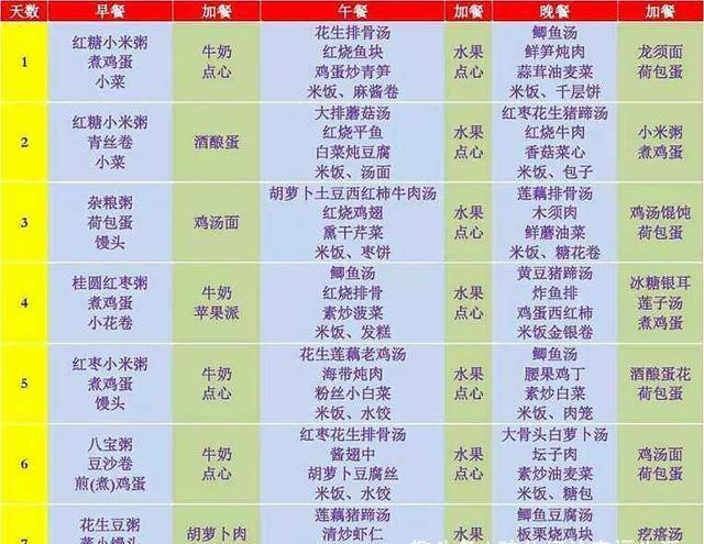 坐月子30天食谱,包括顺产和剖腹产,每个