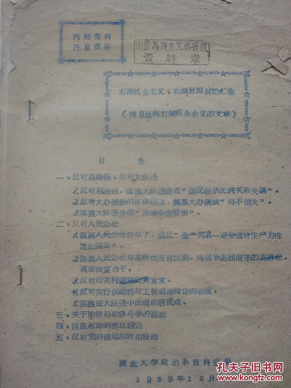 稀罕书(反右派斗争):批判右倾机会主义思潮