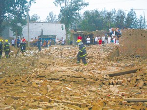 图文:辛集烟花厂爆炸 救援人员清理现场