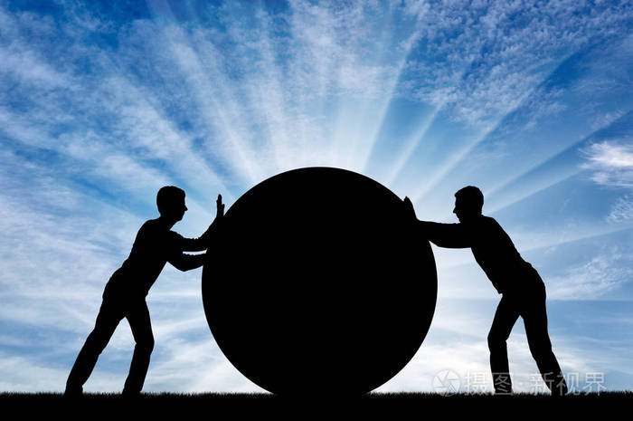 两个自私的人按自己的方式推大球, 不屈服