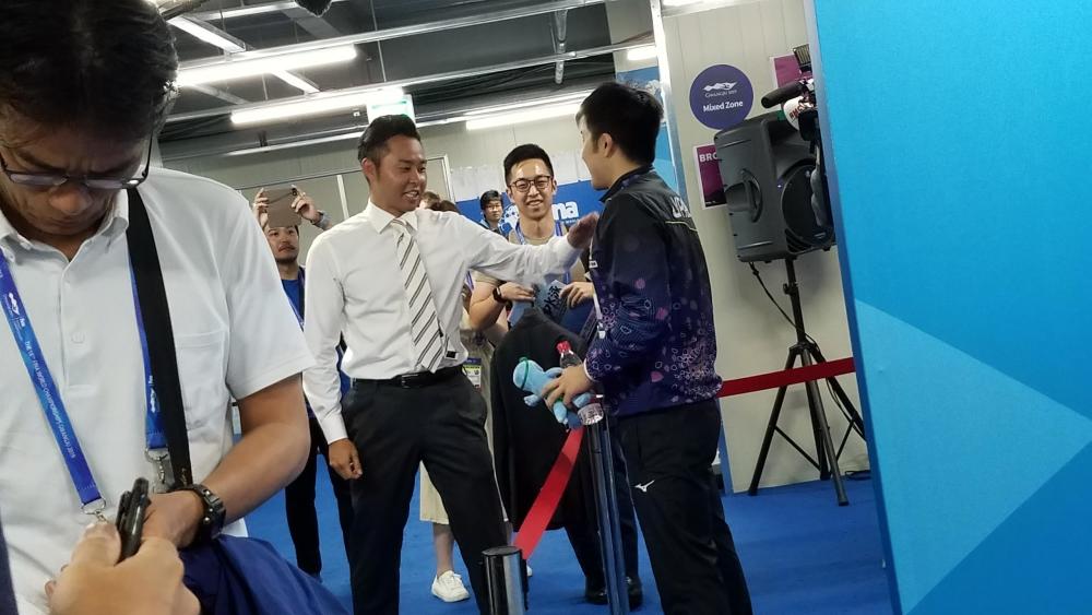 蛙王北岛康介化身解说现身光州 大笑拥抱濑户大也庆祝夺金