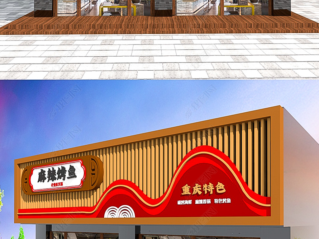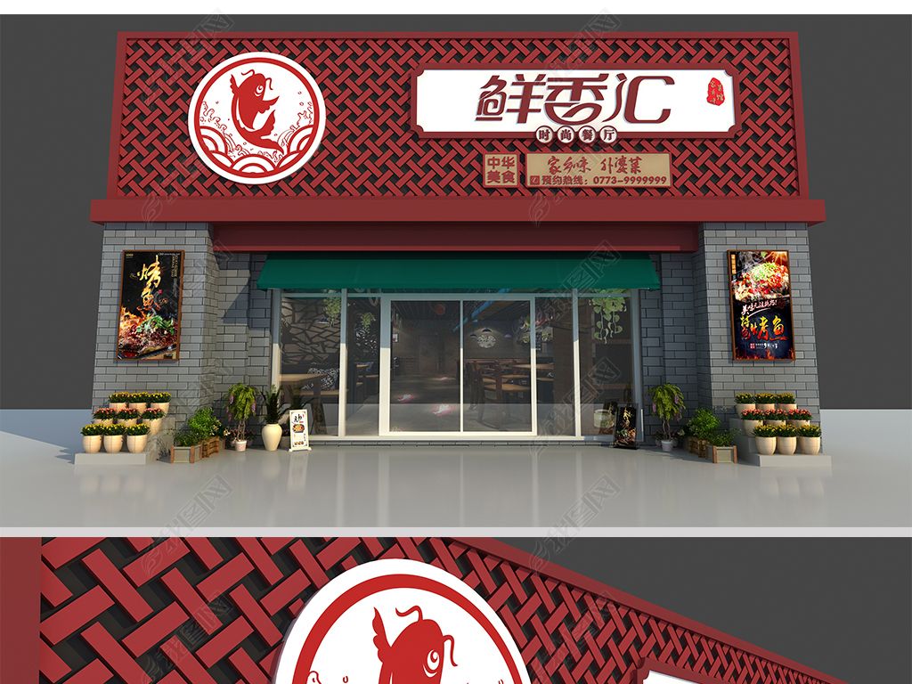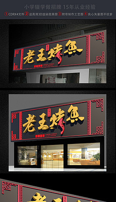 大气中式麻辣烤鱼店门头招牌餐饮饭店门头