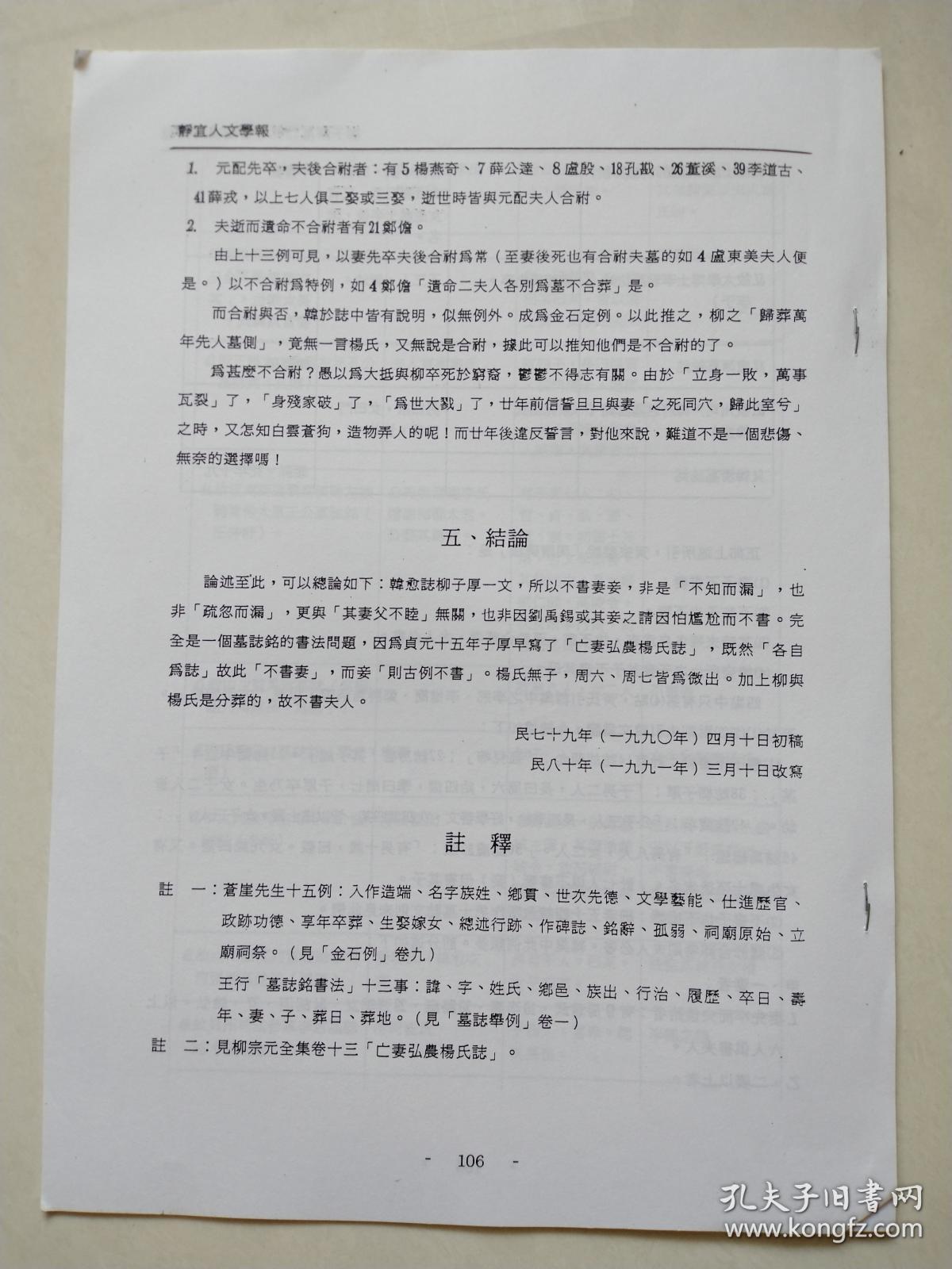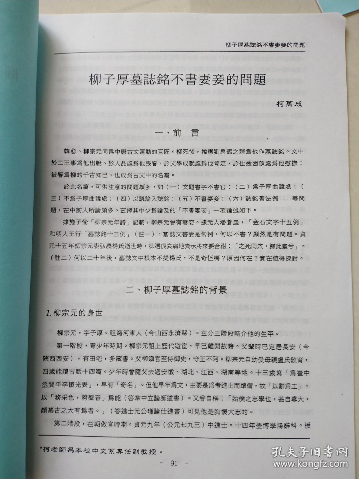 柳子厚墓志铭不书妾的问题 抽印本 16开