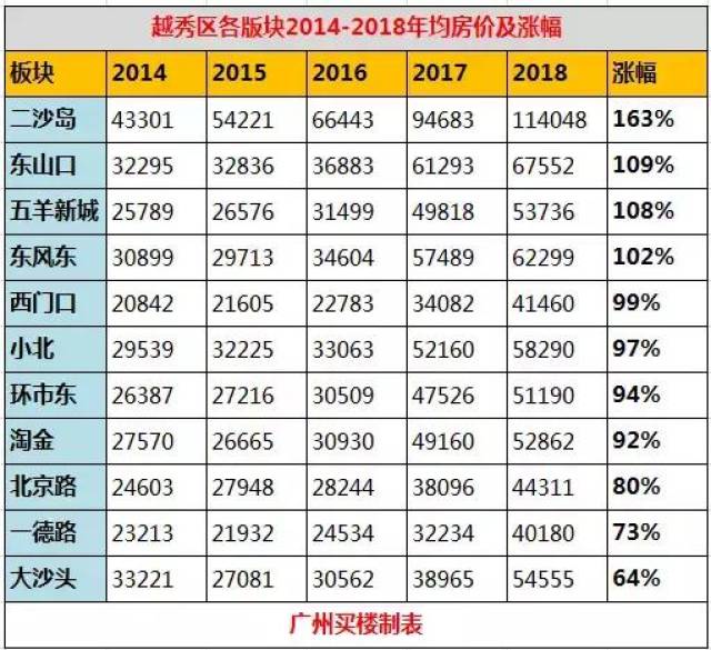 看了广州67大板块5年房价,越秀二沙岛板块