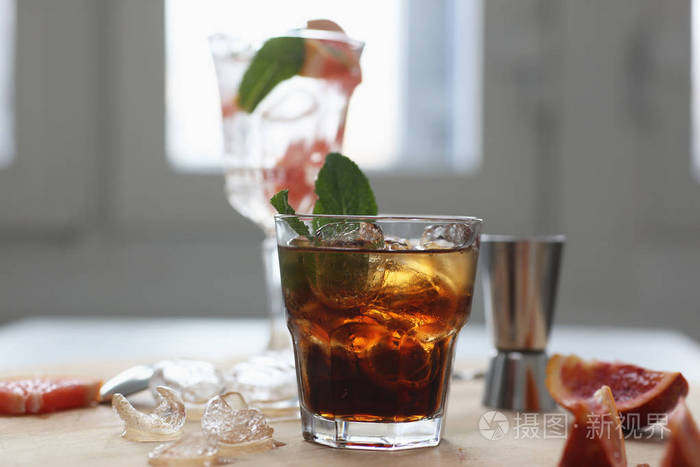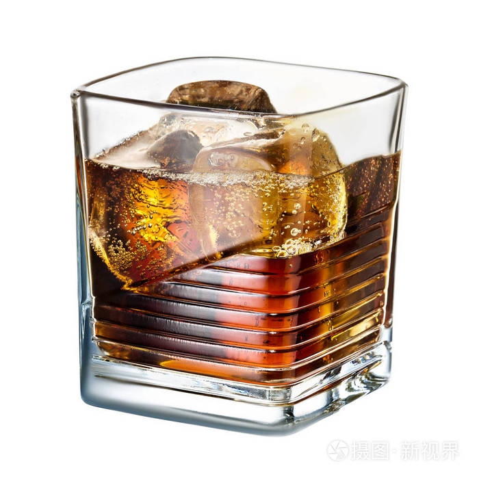 威士忌酒和可乐加冰块