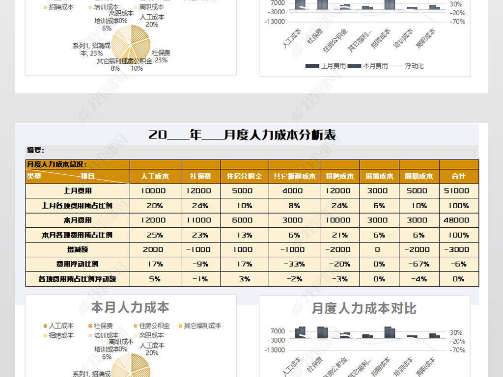 月度人力成本分析表模板