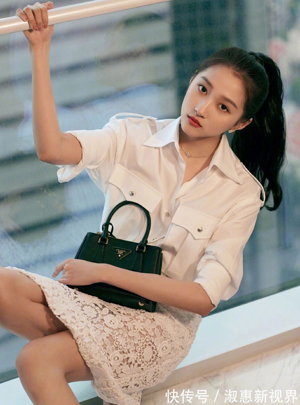 21岁关晓彤美得不低调,衬衫搭配镂空裙