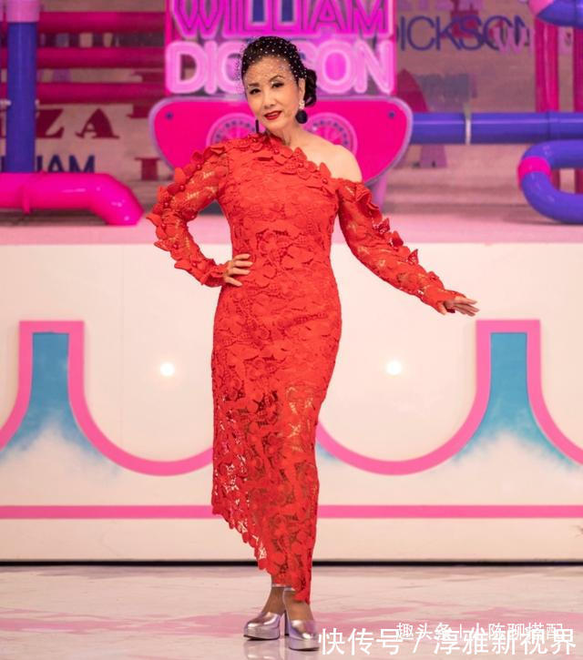 汪明荃又玩出新花样,流苏领口鸵鸟毛都敢