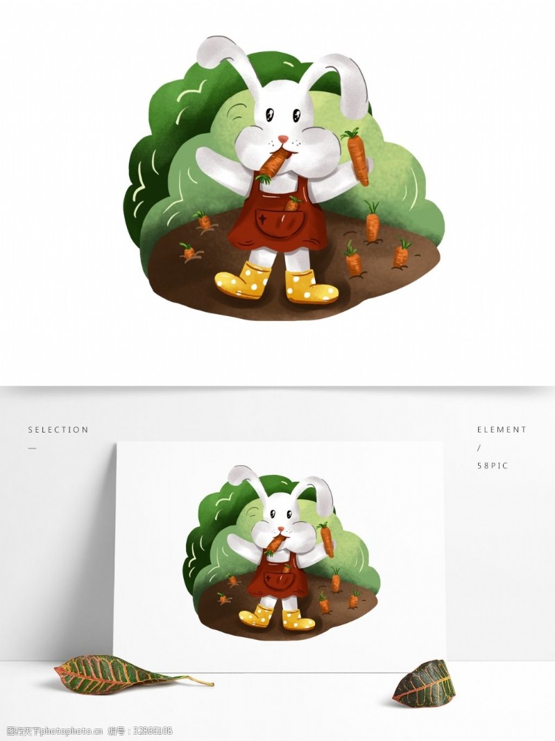 吃货节爱吃胡萝卜的兔子手绘元素模板免费