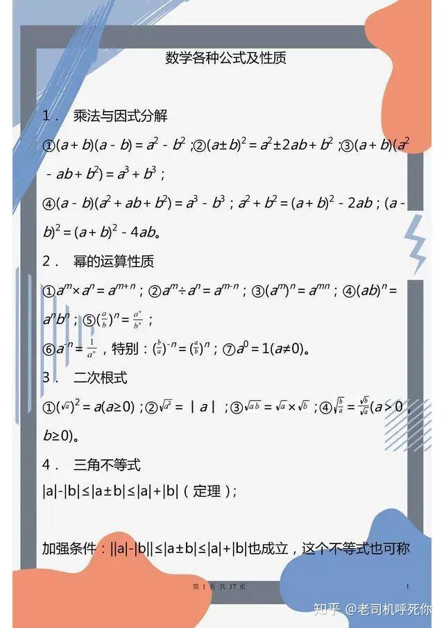 太全了!初中重点数学公式总结!孩子考试