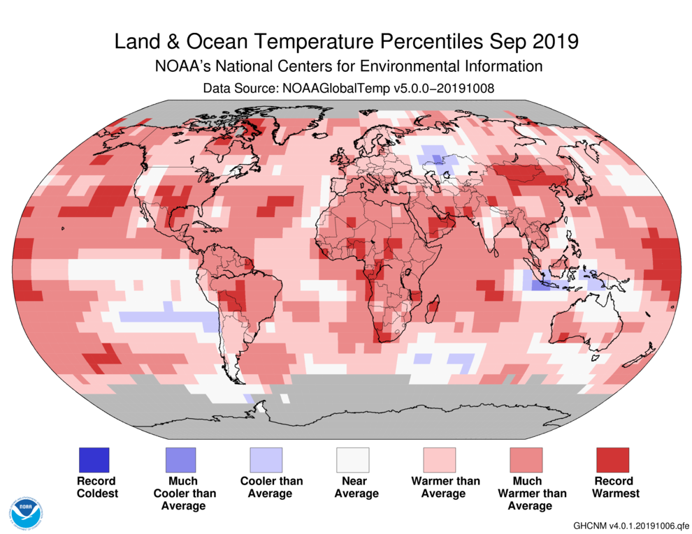 NOAA:2019年9月温度创1880年有记录以来