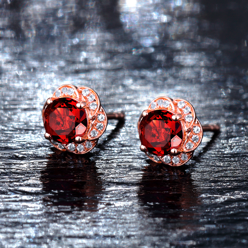 色石榴石耳钉9K18K玫瑰金宝石女饰送礼