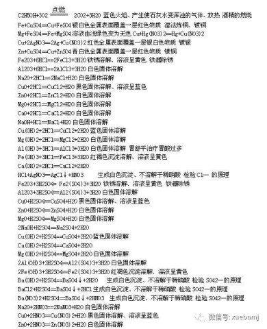 初中化学所有方程式和现象总结,为孩子