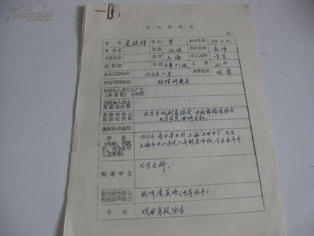 著名舞蹈研究学者.研究员宋铁铮 职称申请