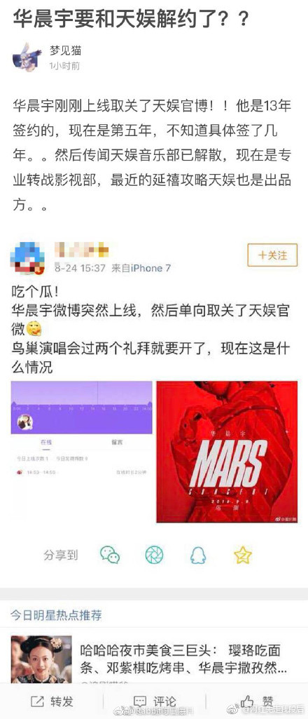 日下午,网曝@华晨宇yu 微博取关天娱传媒