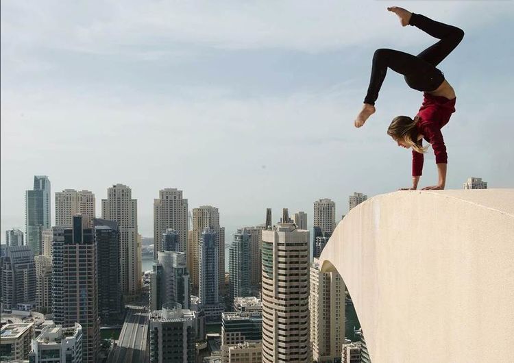 女子天生具有冒险精神,为了自拍效果更好,